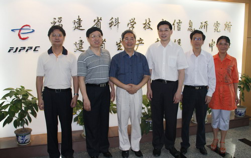 陳明義同志(左三)與省科技廳廳長(zhǎng)莊榮文(右三)等合影