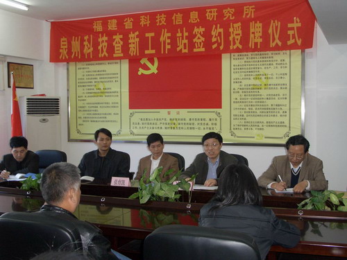 3月21日,“福建省科技信息研究所泉州科技查新工作站”在泉州市科技信息研究所設立(服務區域包括泉州市所轄的11個縣(區、市)及泉州經濟技術開發區)。福建省科技信息研究所所長朱祥枝博士為“泉州科技查新工作站”授牌。至此,福建省科技信息研究所已在福州、三明、泉州3個設區市科技信息(情報)所設立了“科技查新工作站”。