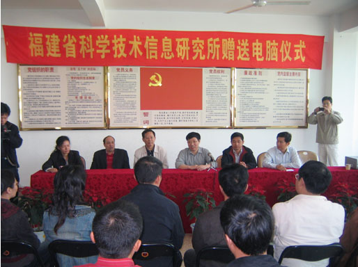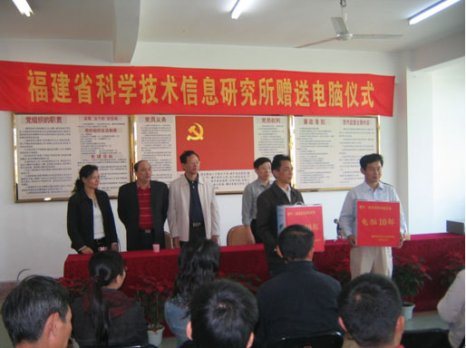 為支持基層科技信息化工作的開展,2008年11月20日,省科技信息研究所向漳浦縣科技局捐贈電腦儀式在漳浦縣科技局舉行。省科技信息研究所所長、研究員朱祥枝同志代表福建省科技信息研究所,向漳浦縣科技局贈送10臺電腦,用于支持漳浦縣科技局培訓中心建設。