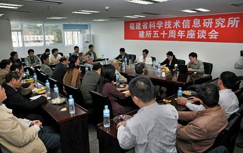 2010年10月29日,福建省科學技術信息研究所召開建所五十周年座談會。離退休所領導葉鐵樹、張玲、王惠萍、林從漢等和所中層以上干部參加了座談會。座談會由朱祥枝所長主持。