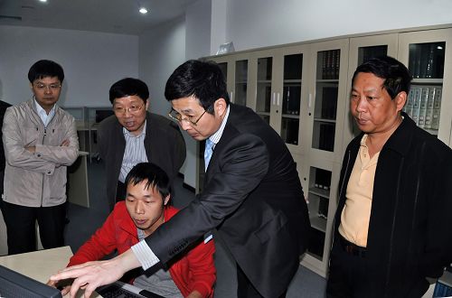圖:莊榮文廳長到福建省臺灣文獻信息中心科技館指導(dǎo)工作