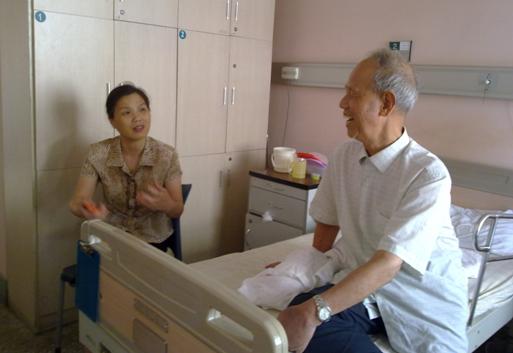 高一真書記到醫(yī)院探望謝金水,將困難補(bǔ)助金送到其愛人手中
