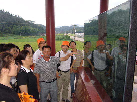 參觀八一紀念亭,學習胡錦濤總書記視察八一村時所作的“政策好,天幫忙,還得靠人努力”的重要指示