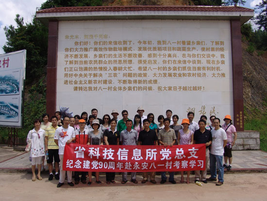 2011年7月22日,在舉國歡慶中國共產黨建黨90華誕之際,省科技信息所黨總支組織全所黨員,到胡錦濤總書記曾親臨視察過的村莊——永安八一村考察學習。