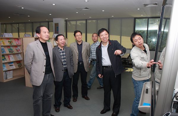 2013年11月28日上午,省臺辦副巡視員范鑫、調(diào)研處處長翁林楠等一行3人到省信息所臺灣文獻信息中心科技館開展調(diào)研活動。在科技館閱覽大廳寬大的觸摸顯示屏前,范鑫副巡視員一行聽取了省信息所朱祥枝所長關于臺灣文獻信息資源建設、服務及開展情報研究方面的簡短匯報,觀看了臺灣專利數(shù)據(jù)查詢演示和慧科資訊臺灣報紙的當天新聞,查看了省信息所建設的臺灣文獻信息中心總平臺上各個館庫的資源建設情況,還到多功能廳觀看了臺灣科技音像資料,參觀了科技館的臺灣書刊陳列、密集書庫以及專家工作室。