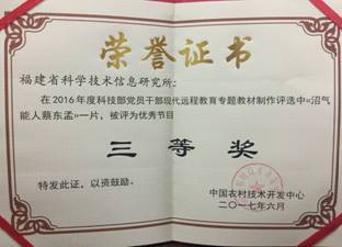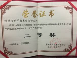 2016年度,我所共制作完成并播出黨員干部現代遠程教育專題教材21集,時長191分鐘。其中,《王涵生的石斑魚產業》獲得優秀節目二等獎,《沼氣能人蔡東孟》獲得優秀節目三等獎。