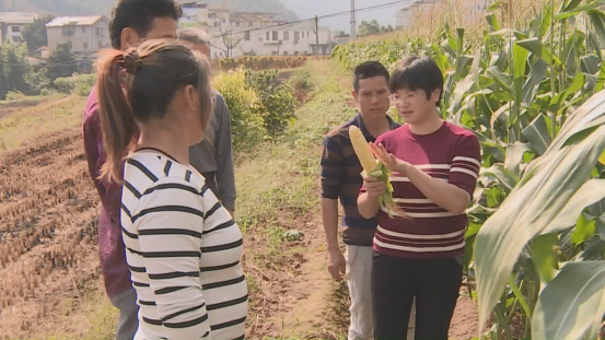 圖:華樹妹(右一)在指導(dǎo)農(nóng)戶進(jìn)行玉米種植