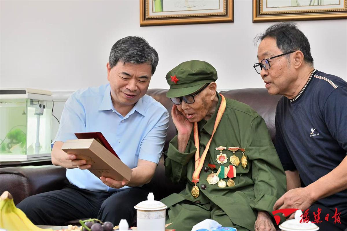 今年是紀(jì)念中國人民抗日戰(zhàn)爭暨世界反法西斯戰(zhàn)爭勝利80周年。8月25日,省委書記、省人大常委會主任周祖翼,省委副書記、省長趙龍,省委副書記、福州市委書記郭寧寧等省領(lǐng)導(dǎo)在福州看望慰問抗戰(zhàn)老戰(zhàn)士代表,頒發(fā)“中國人民抗日戰(zhàn)爭勝利80周年”紀(jì)念章,并代表省委、省政府向他們致以崇高敬意和誠摯問候。